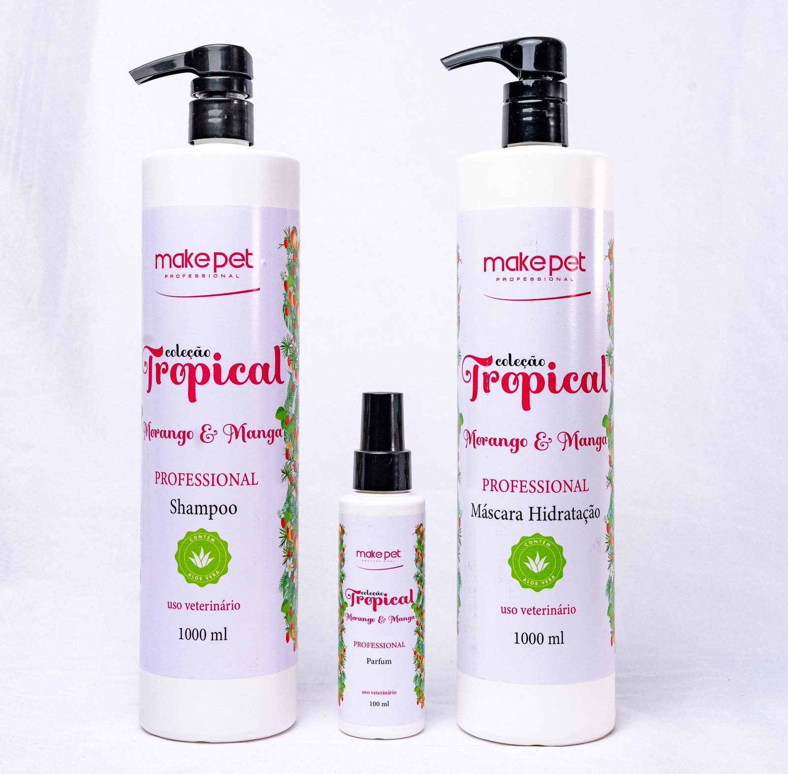 A Coleção Tropical traz uma explosão de frescor e sabor, além de deixar seu Pet com o pelo brilhante e hidratado. A nossa fragrância de Morango e Manga, com fixação prolongada, frutada e extremamente refrescante é ideal para o seu Pet!